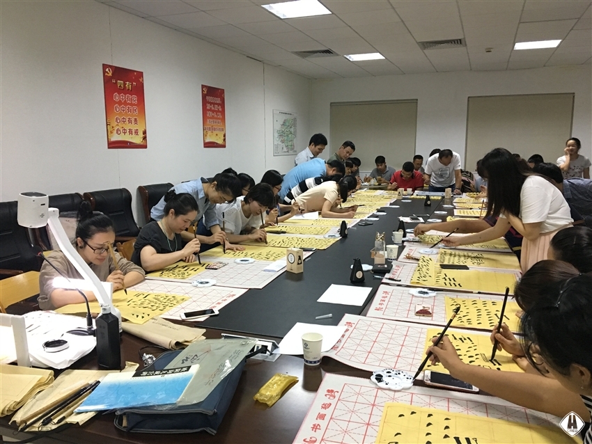 725日中午1230,書法班開班,廣西書法家協(xié)會(huì)的蒙匯鵬老師先從執(zhí)筆姿勢、手法運(yùn)用、字體結(jié)構(gòu)等基礎(chǔ)理論知識(shí)進(jìn)行了講授,在實(shí)踐練習(xí)過程中,大家認(rèn)真臨摹,反復(fù)練習(xí),個(gè)個(gè)興趣盎然,現(xiàn)場氣氛濃厚,一片翰墨飄香。