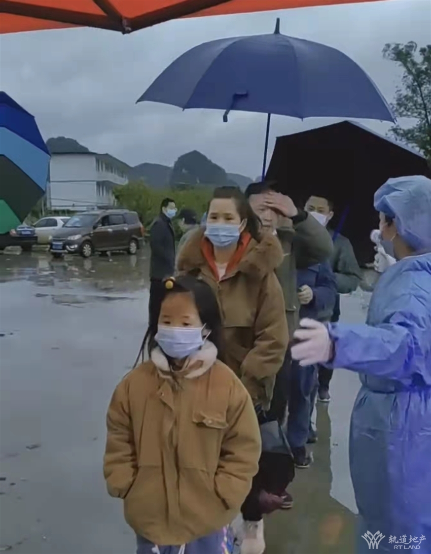 冒雨維持核酸檢測隊(duì)伍秩序