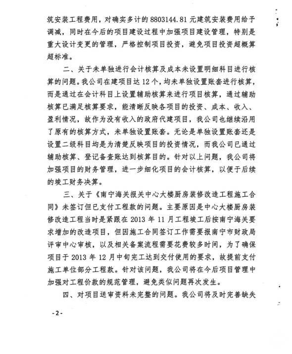 南寧軌道地產(chǎn)集團(tuán)有限責(zé)任公司關(guān)于對(duì)南寧海關(guān)報(bào)關(guān)中心工程預(yù)算執(zhí)行情況審計(jì)事宜的復(fù)函
